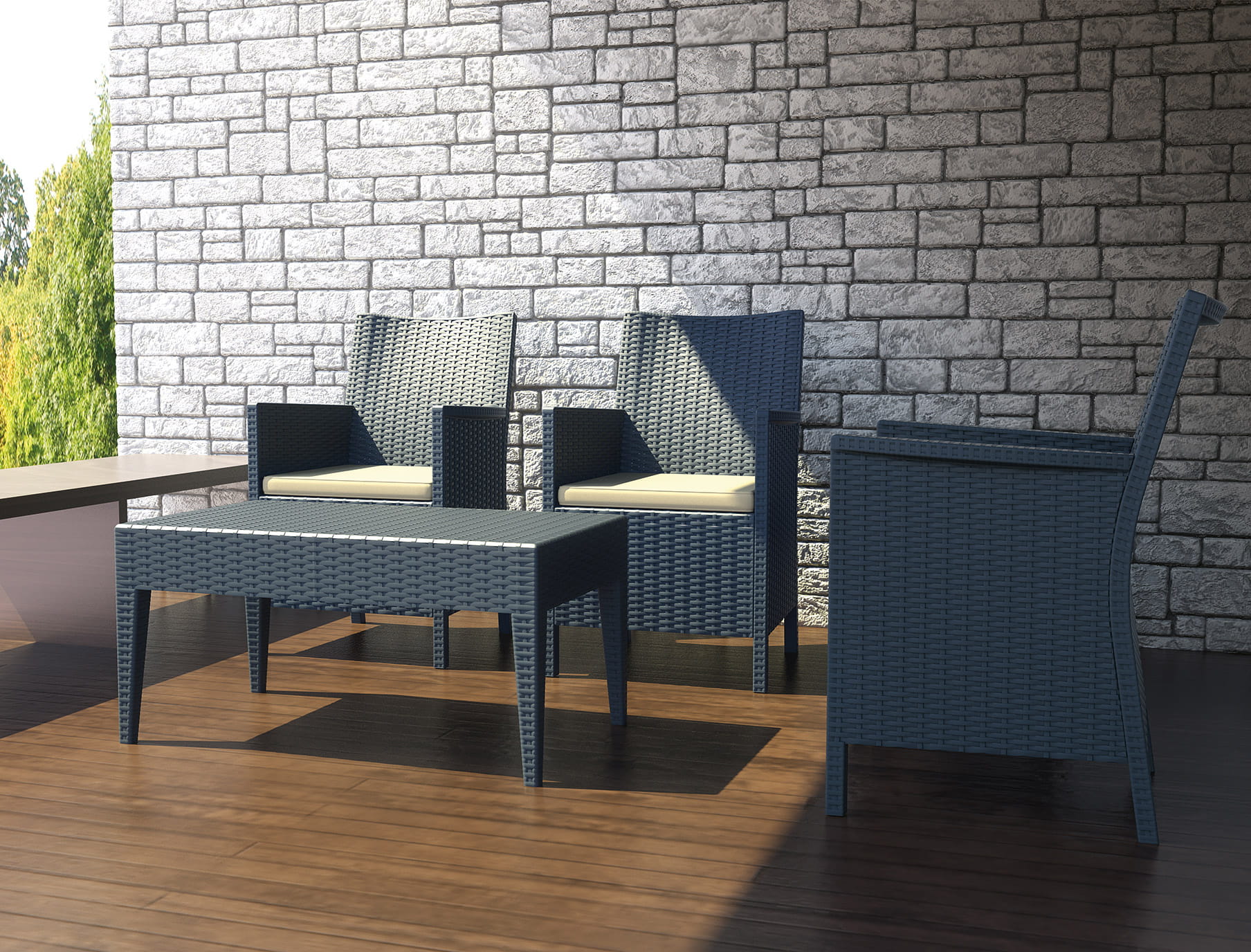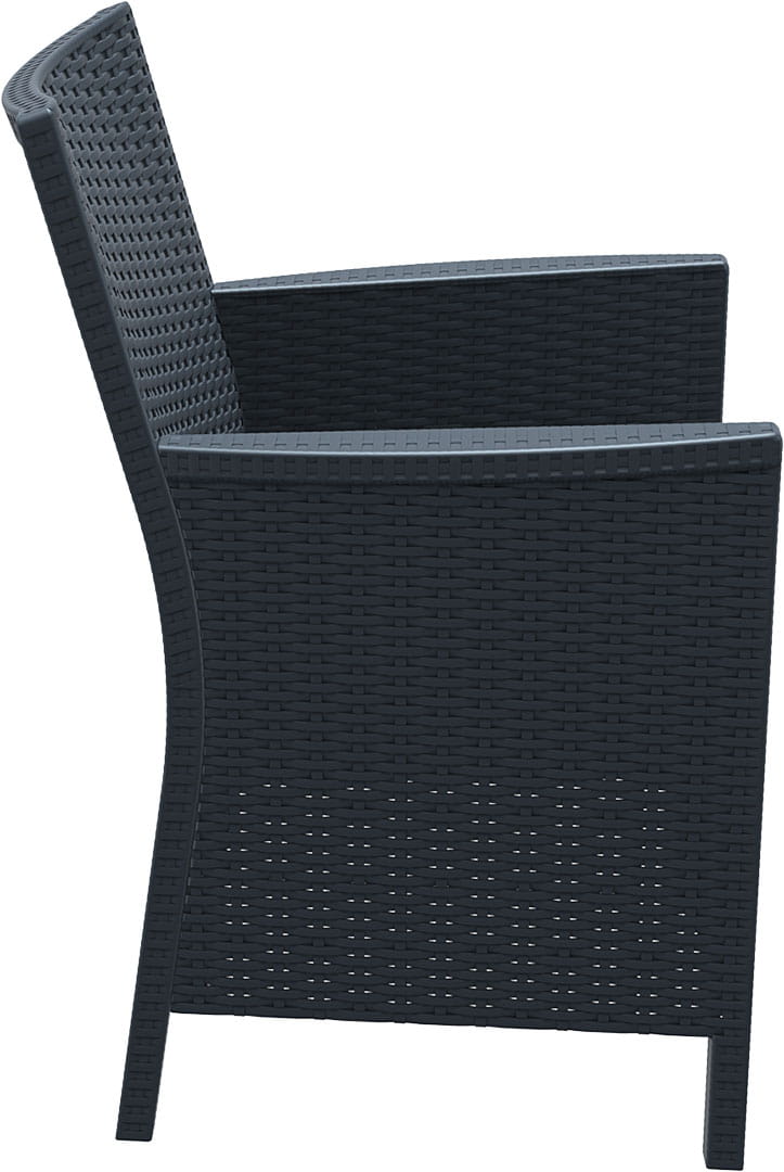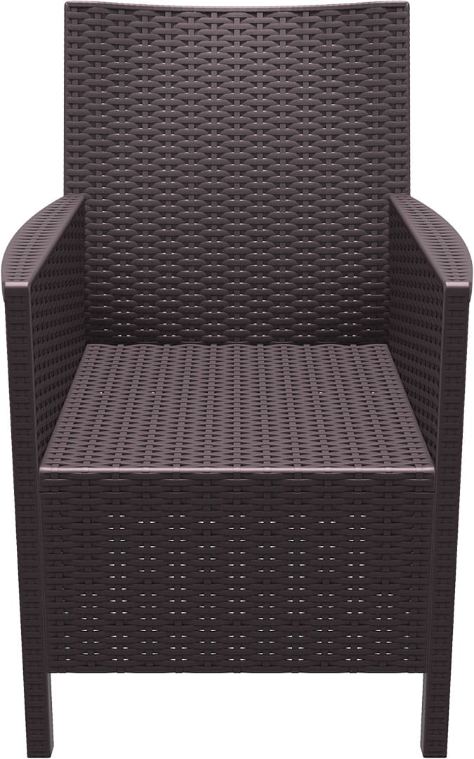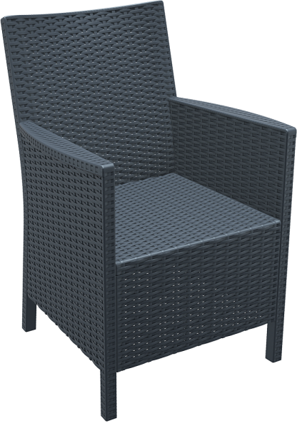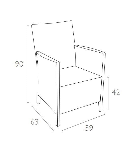 Krzesło wykonane z wysokiej jakości tworzywa sztucznego imitujacego technorattan. Niemetalowe ramy nigdy nie rdzewieją. Materiał odporny na promieniowanie UV, który zapewnia że kolory nie blakną. Do użytku we wnętrzach i na zewnątrz.