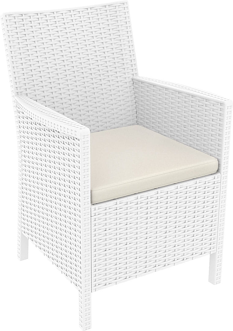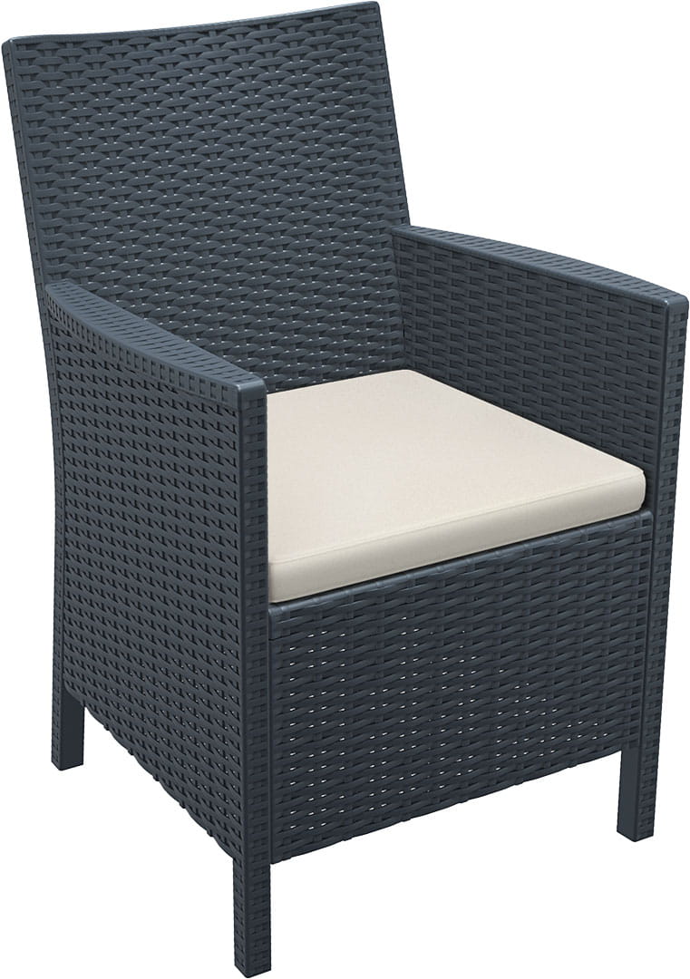Krzesło wykonane z wysokiej jakości tworzywa sztucznego imitujacego technorattan. Opcjonalnie można dokupić poduszkę na siedzisko.