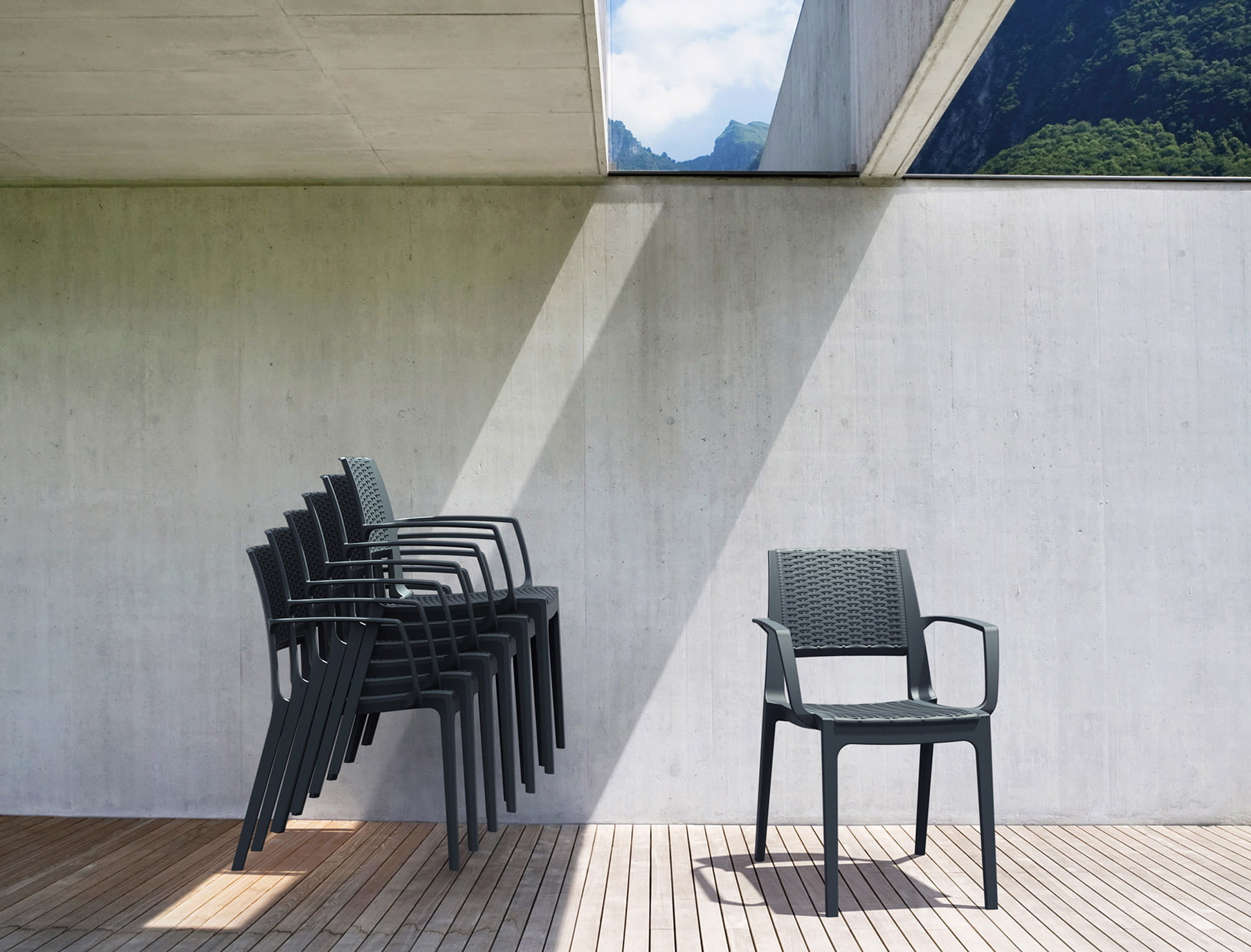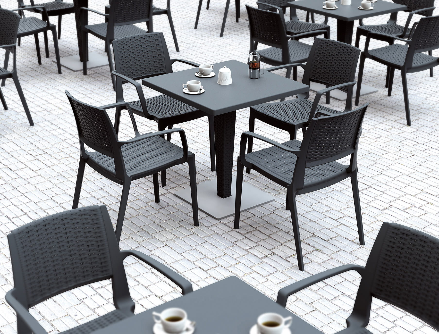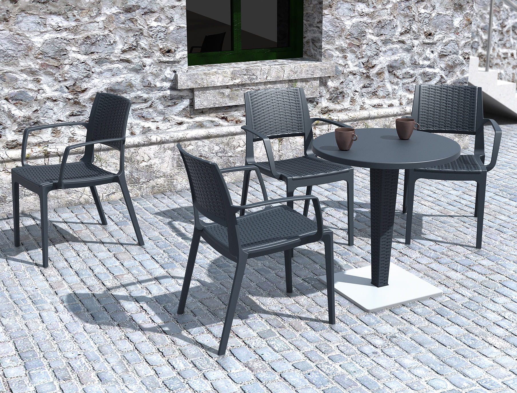 Krzesło wykonane z wysokiej jakości tworzywa sztucznego imitującego technorattan. Krzesła można sztaplować.