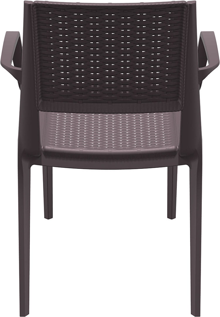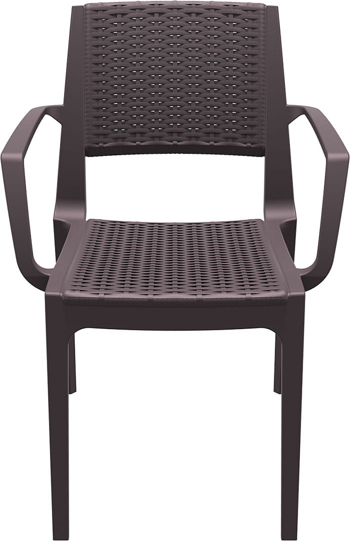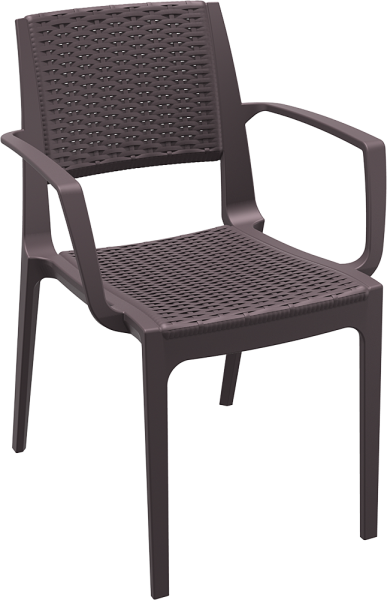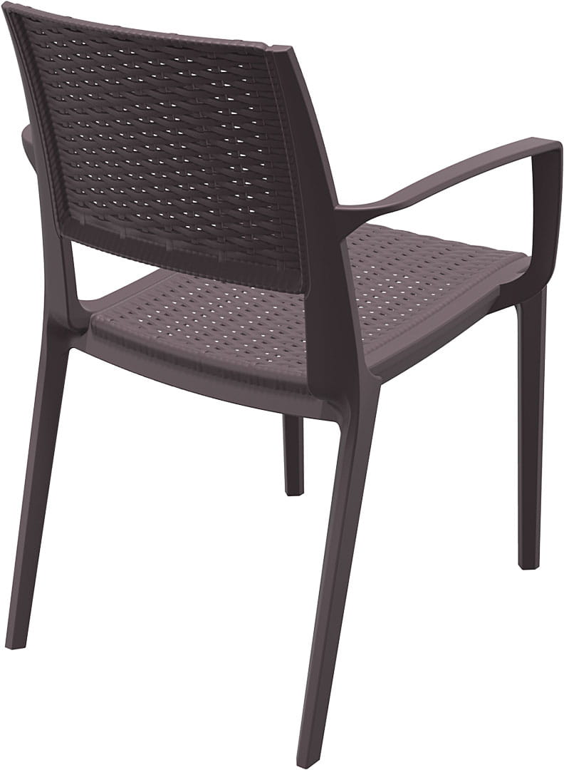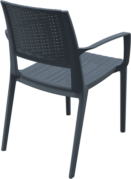 Krzesło wykonane z wysokiej jakości tworzywa sztucznego imitujacego technorattan. Niemetalowe ramy nigdy nie rdzewieją. Materiał odporny na promieniowanie UV, który zapewnia że kolory nie blakną. Do użytku we wnętrzach i na zewnątrz.