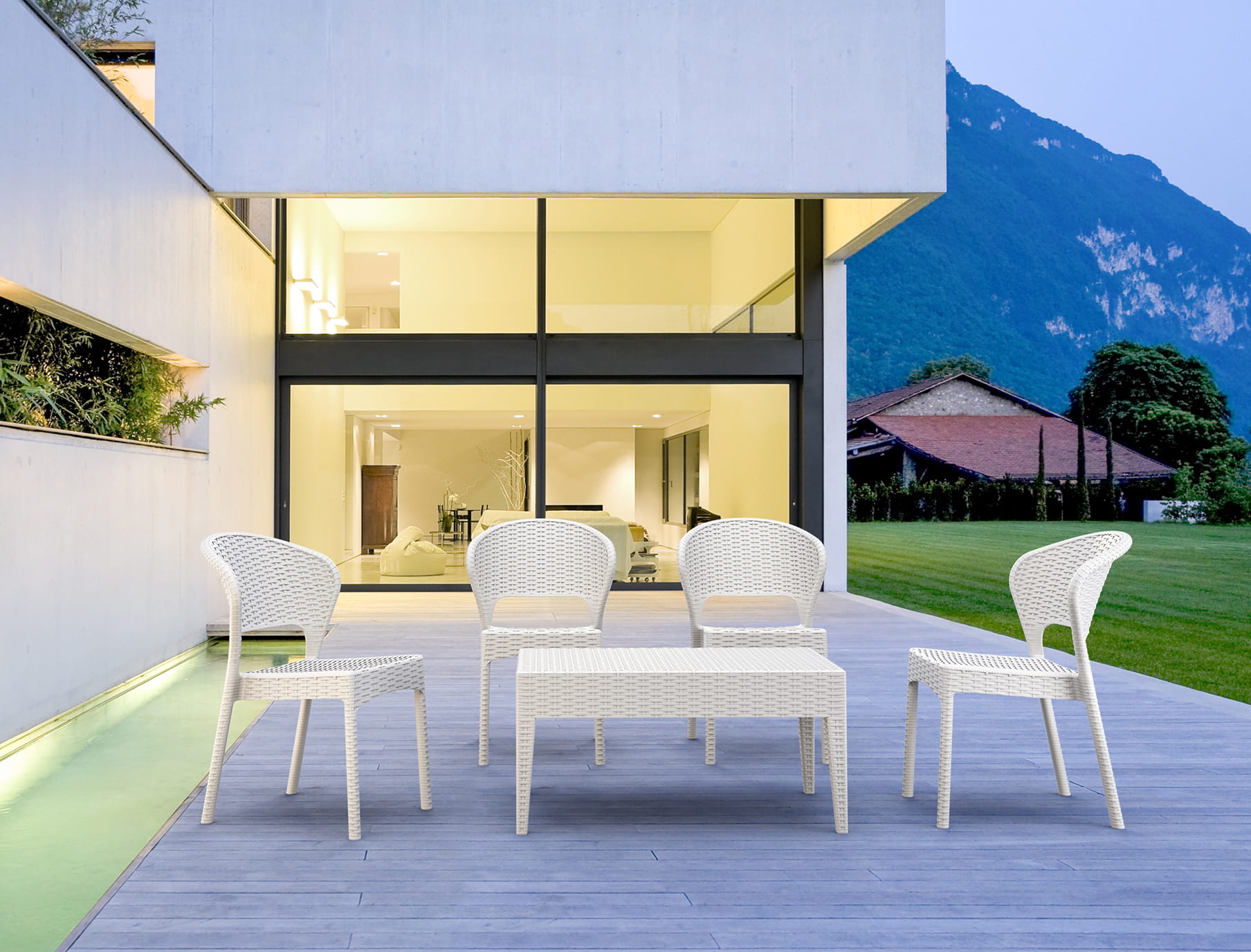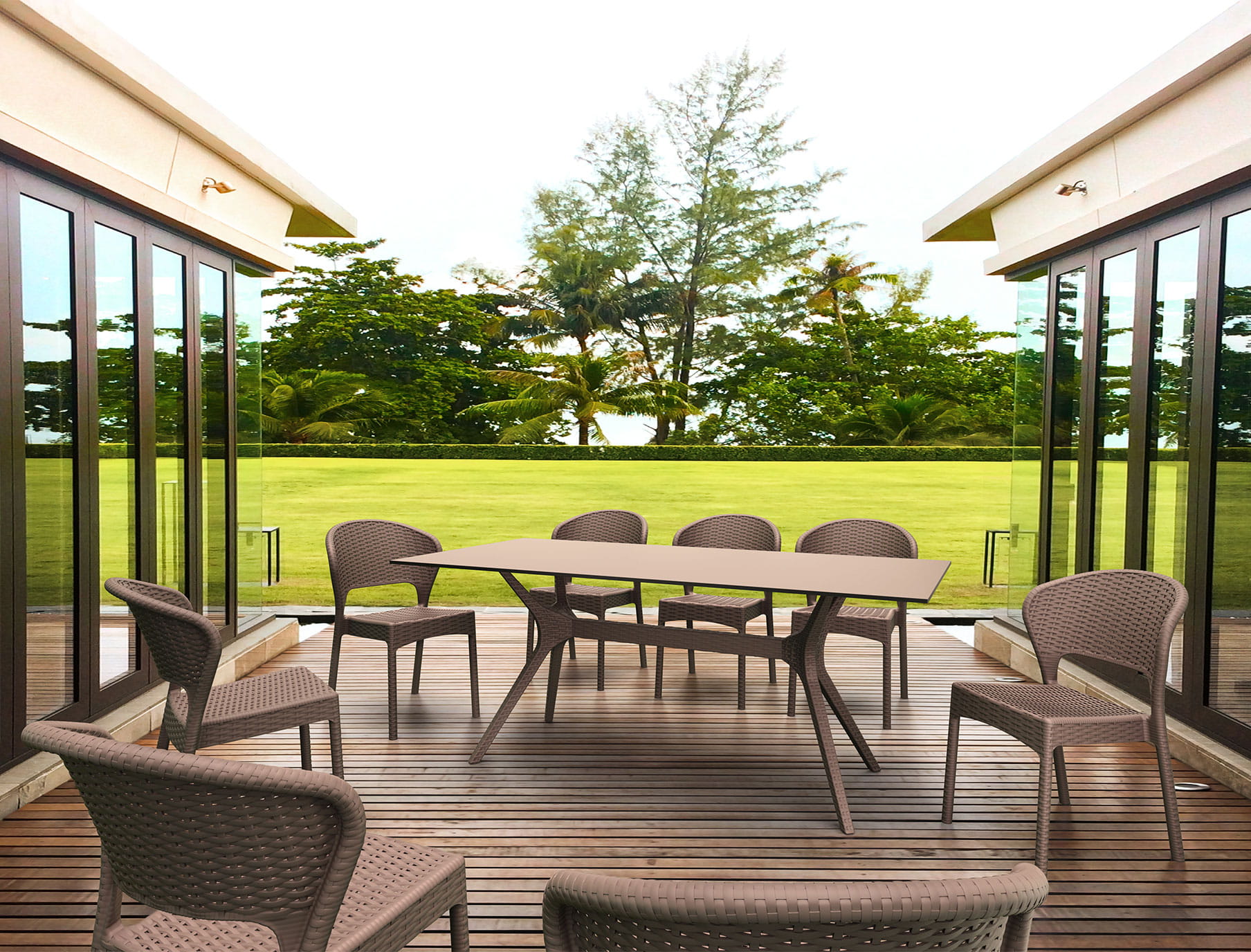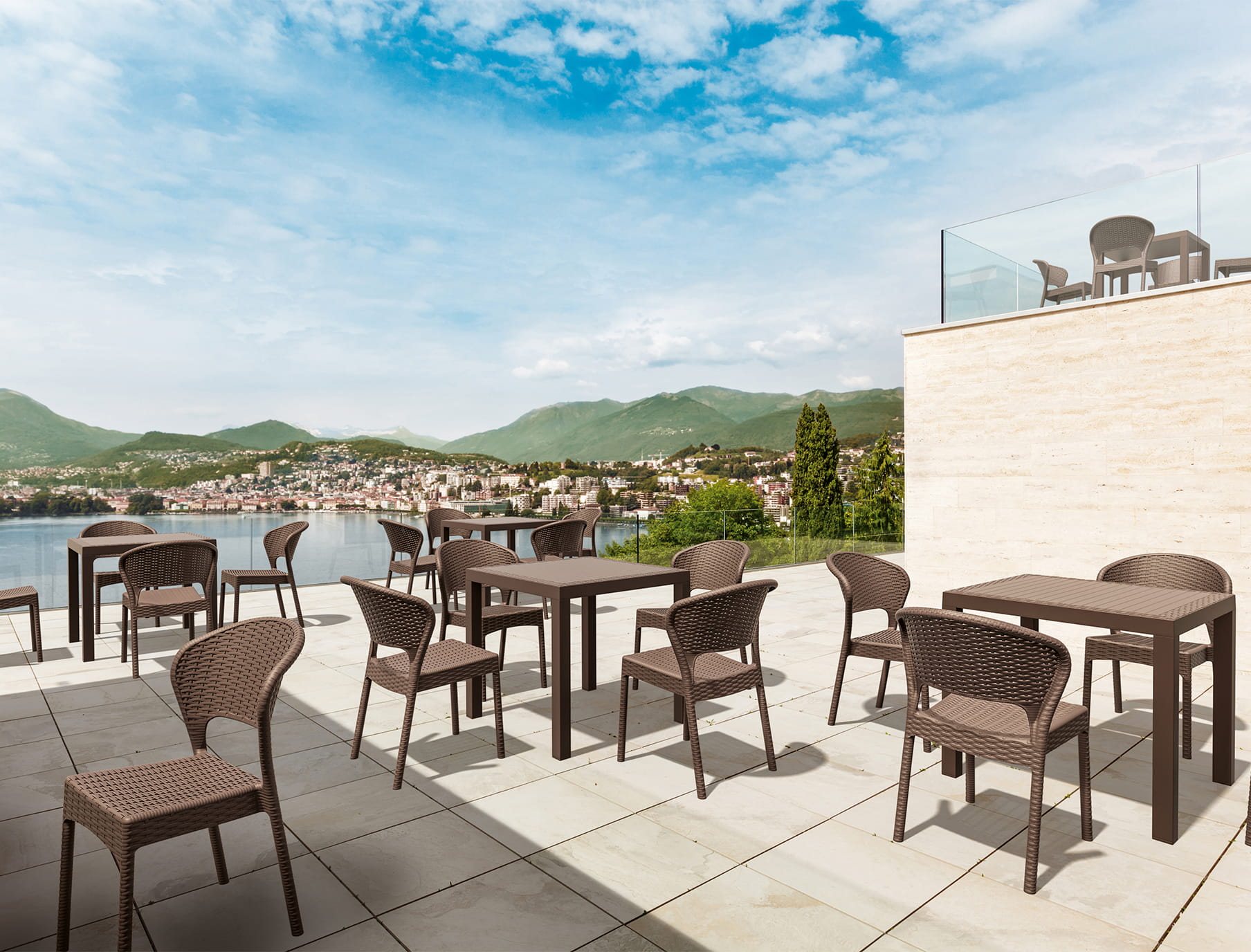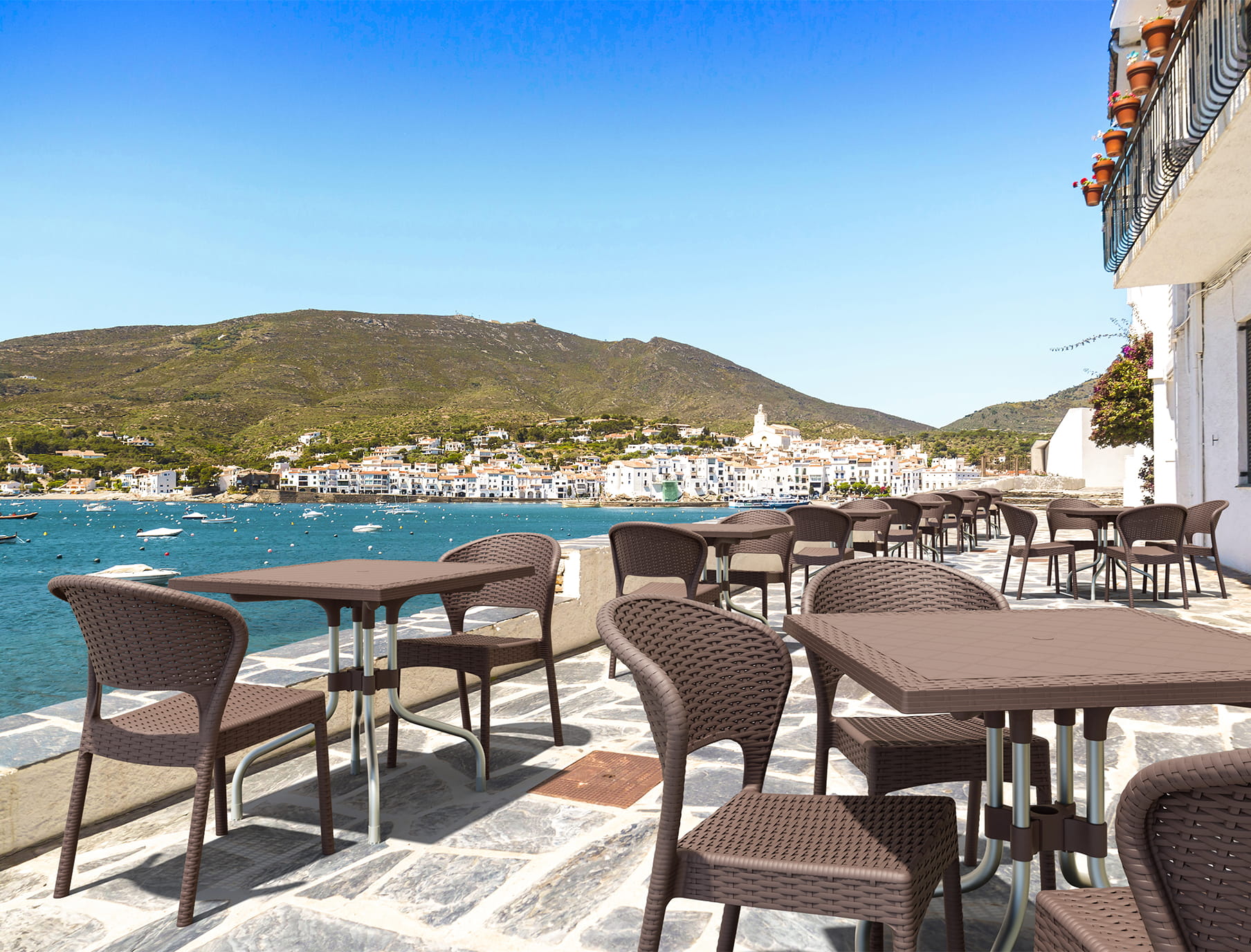 Meble z eco technorattanu Siesta dedykowane są zarówno do użytku przywatnego jako meble ogrodowe oraz jako krzesła restauracyjne, kawiarniane, do ogródków kawiarnianych, plażowych, basenowych.