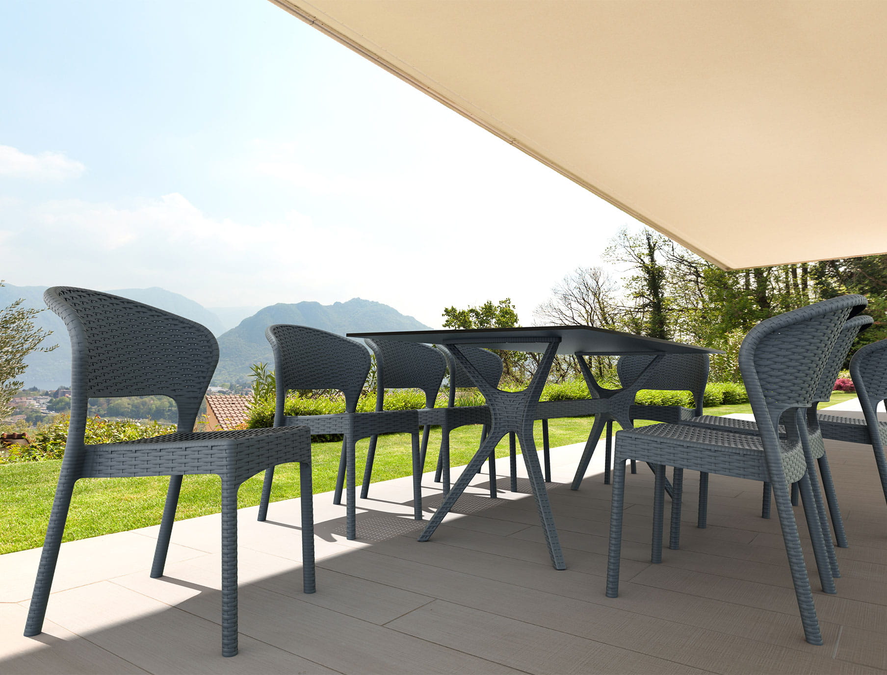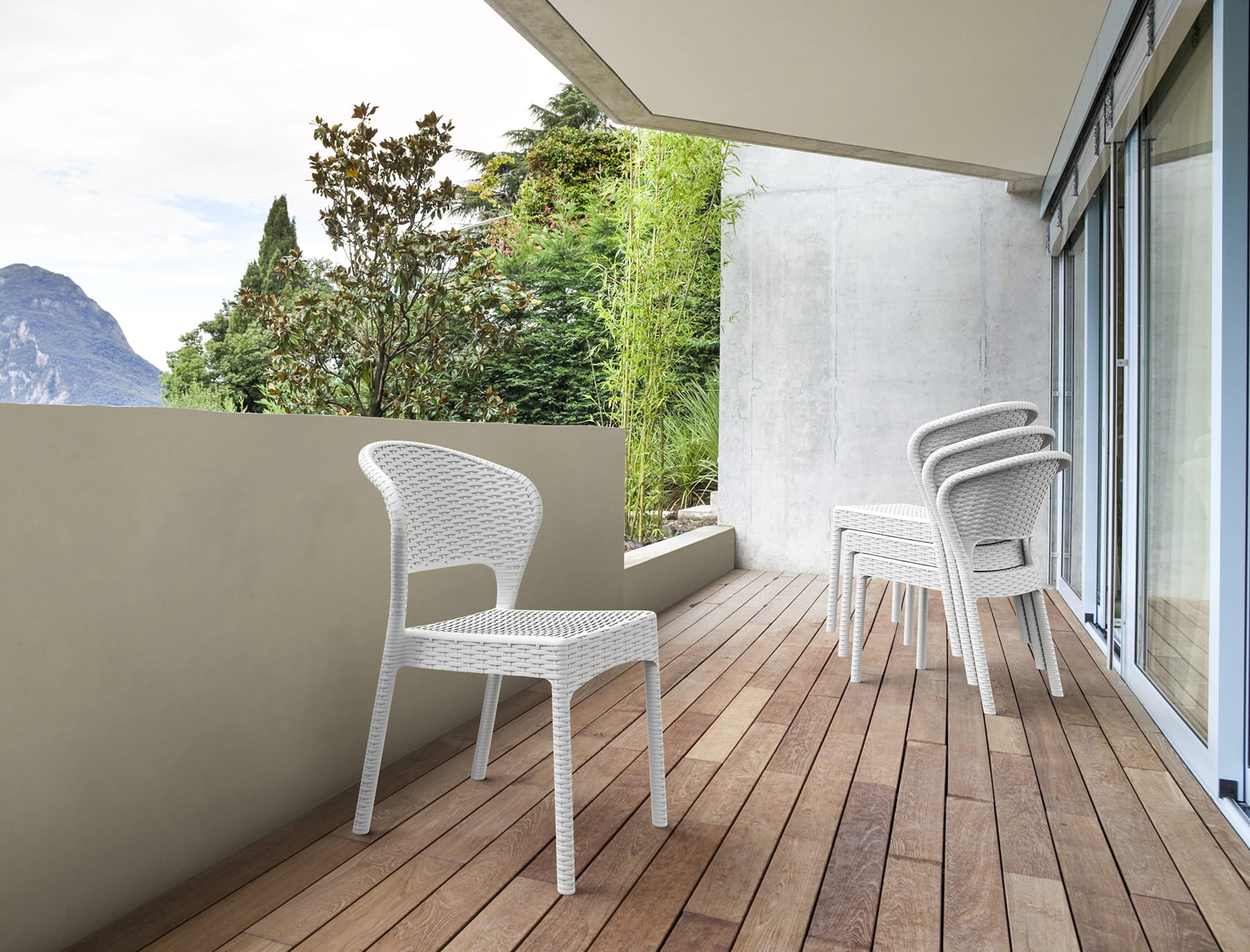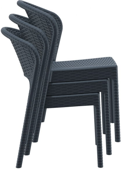 Krzesła Daytona Siesta wykonane z wytrzymałego materiału imitującego technorattan - jednolity odlew z wysokiej jakości tworzywa. Krzesła można sztaplować.