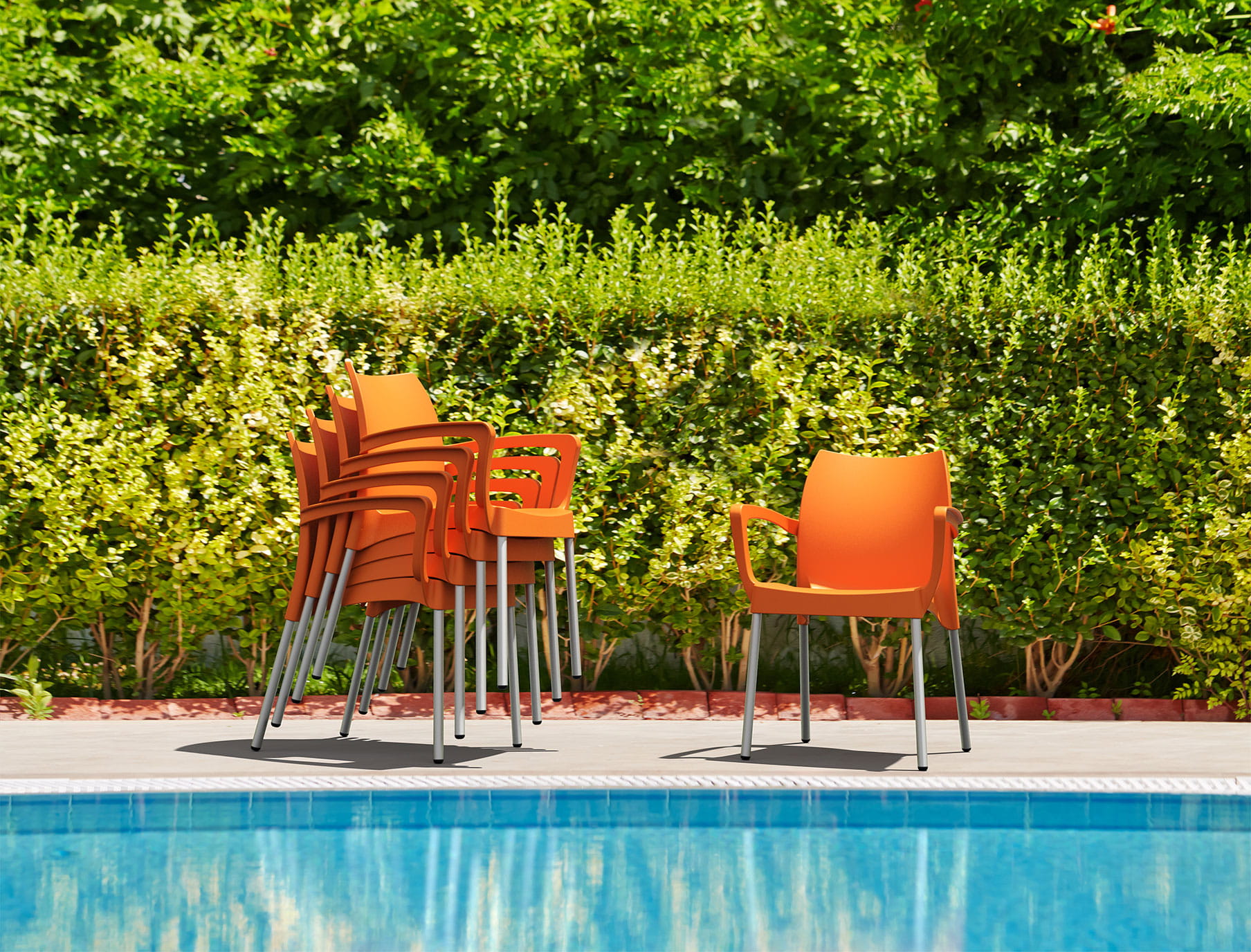 Środowisko agresywne: Krzesło wykazuje pełną niewrażliwość na chlor basenowy oraz sól morską, co czyni je idealnym wyborem do kurortów, nadmorskich tarasów i stref SPA.
