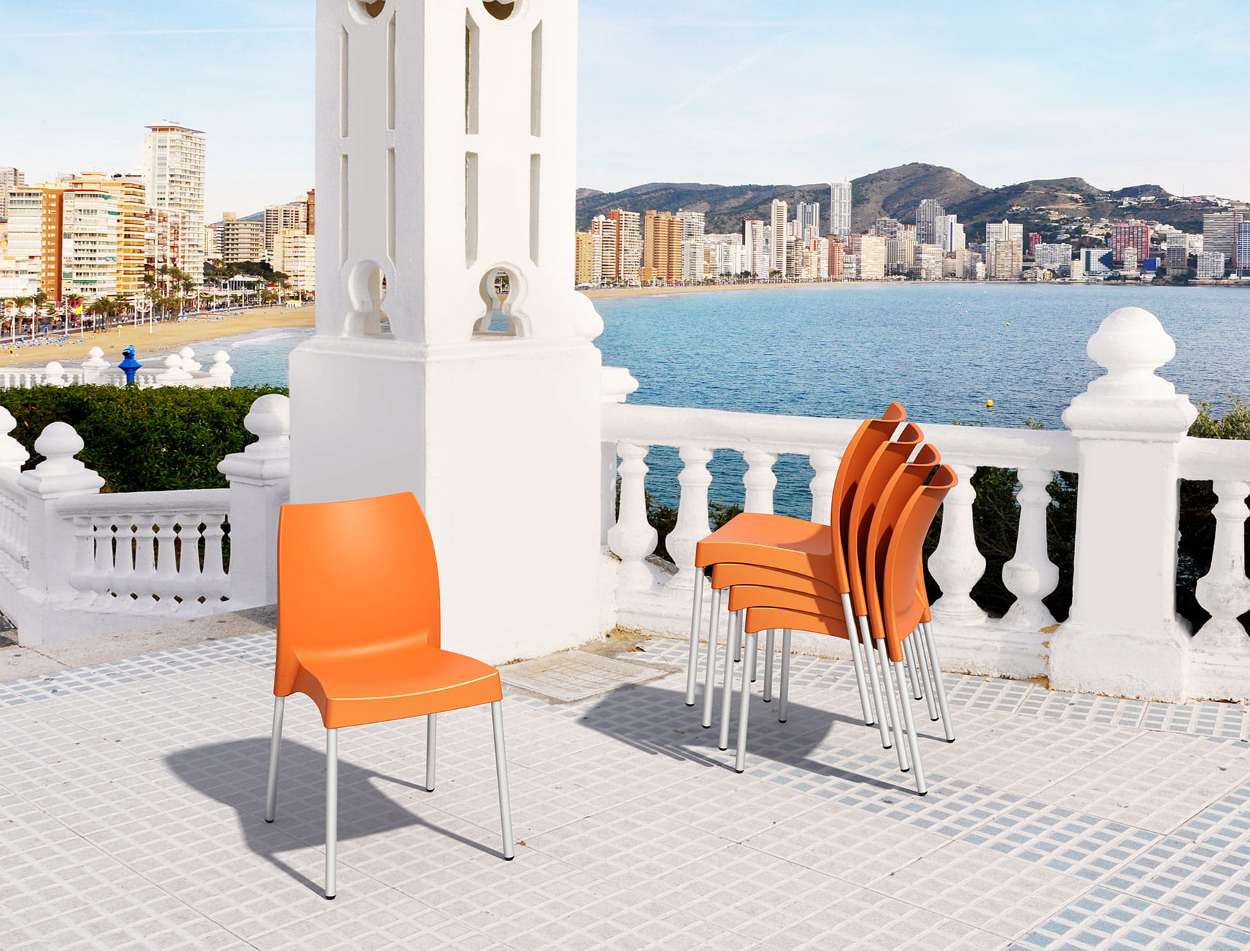 VITA to projekt, który redefiniuje pojęcie krzesła ażurowego w sektorze komercyjnym. Marka Siesta Exclusive stworzyła mebel, który swoją lekką, perforowaną strukturą oparcia nie tylko przyciąga wzrok, ale przede wszystkim zapewnia najwyższy standard ergonomii. Jest to produkt dedykowany miejscom, gdzie intensywna eksploatacja jest codziennością – od tętniących życiem ogródków kawiarnianych, przez eleganckie sale śniadaniowe, aż po wilgotne i wymagające środowiska stref Wellness & SPA.
