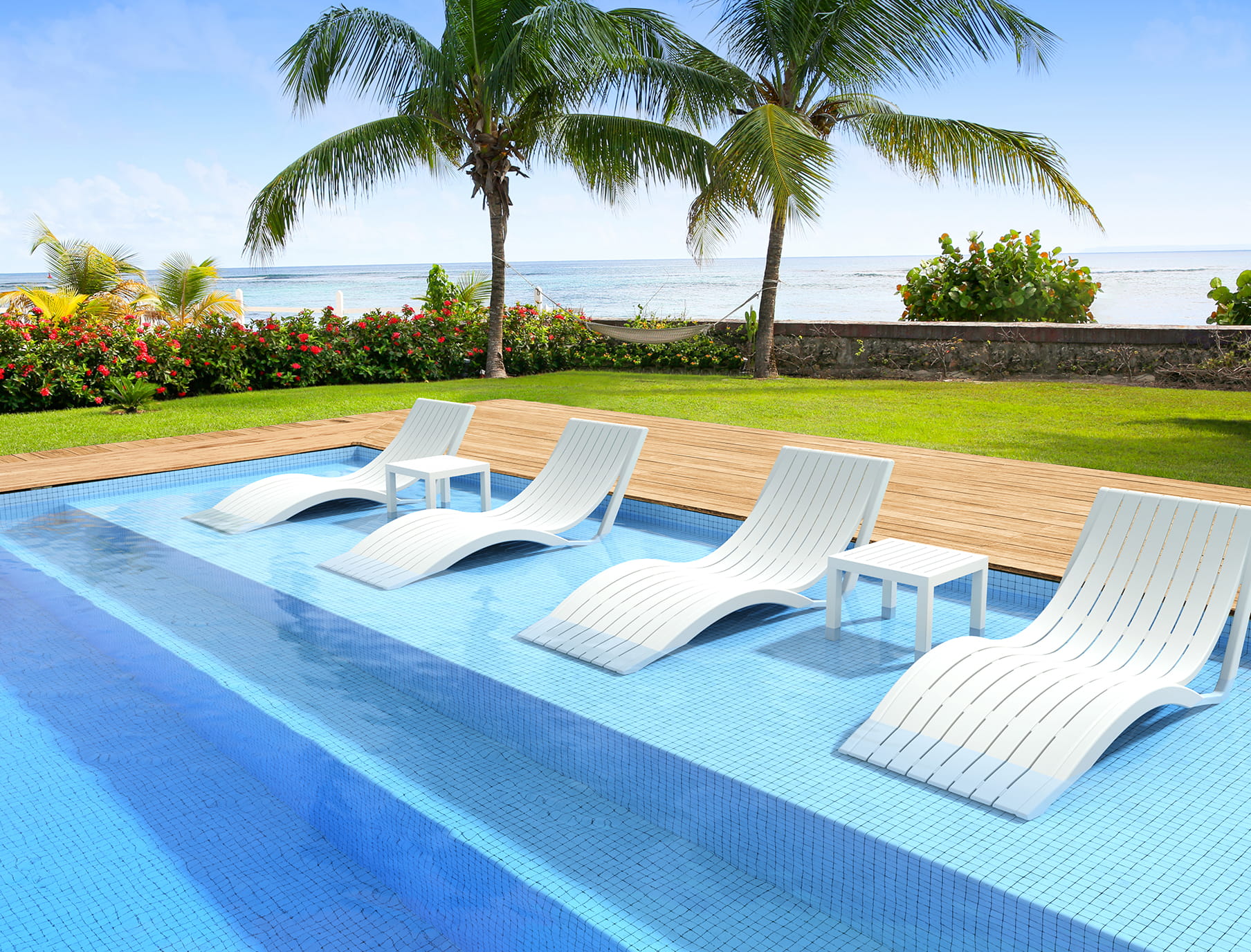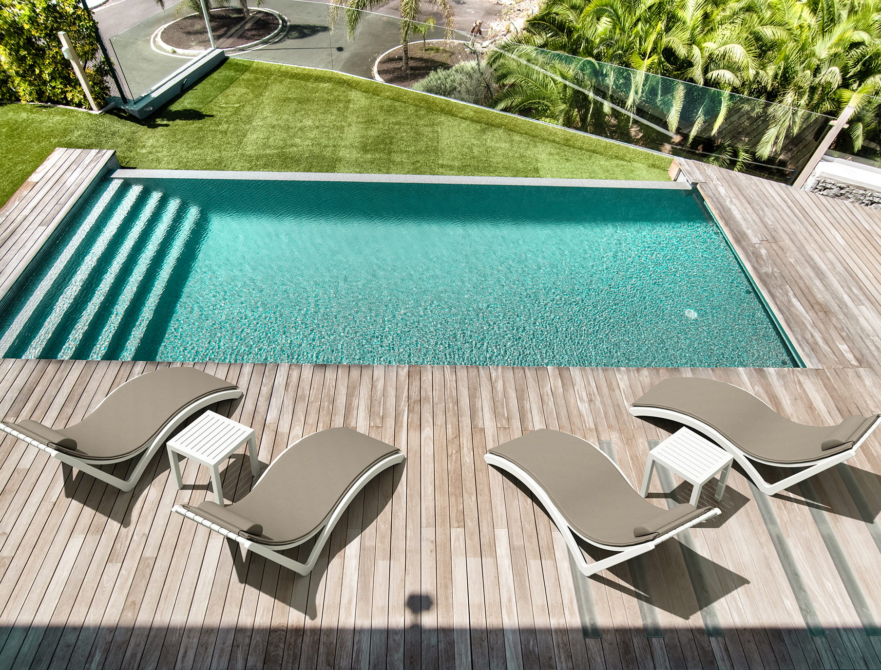 Łatwość Przechowywania: Leżaki są zaprojektowane tak, aby umożliwić bezpieczne sztaplowanie, co pozwala na oszczędność miejsca i szybką reorganizację przestrzeni wokół basenu.