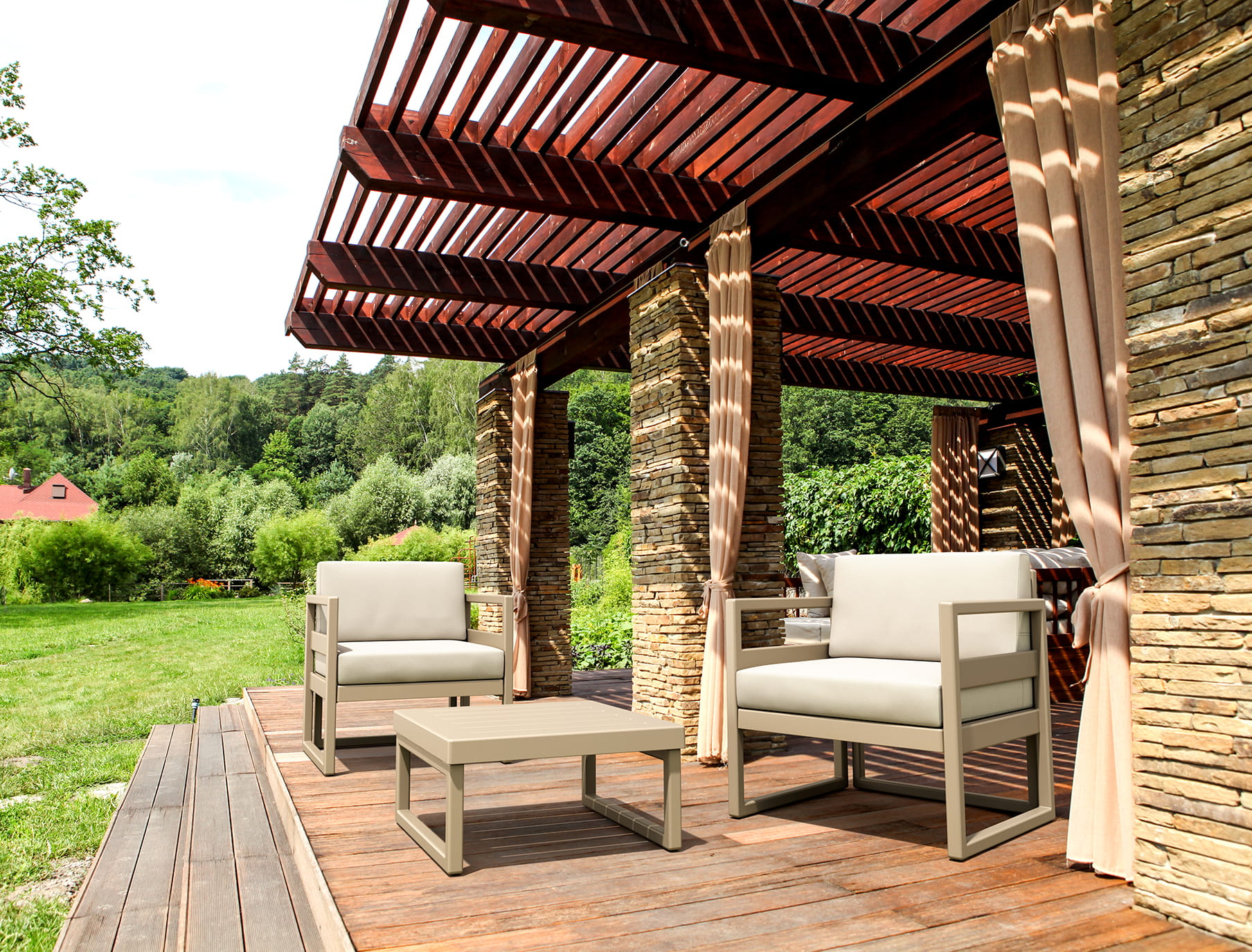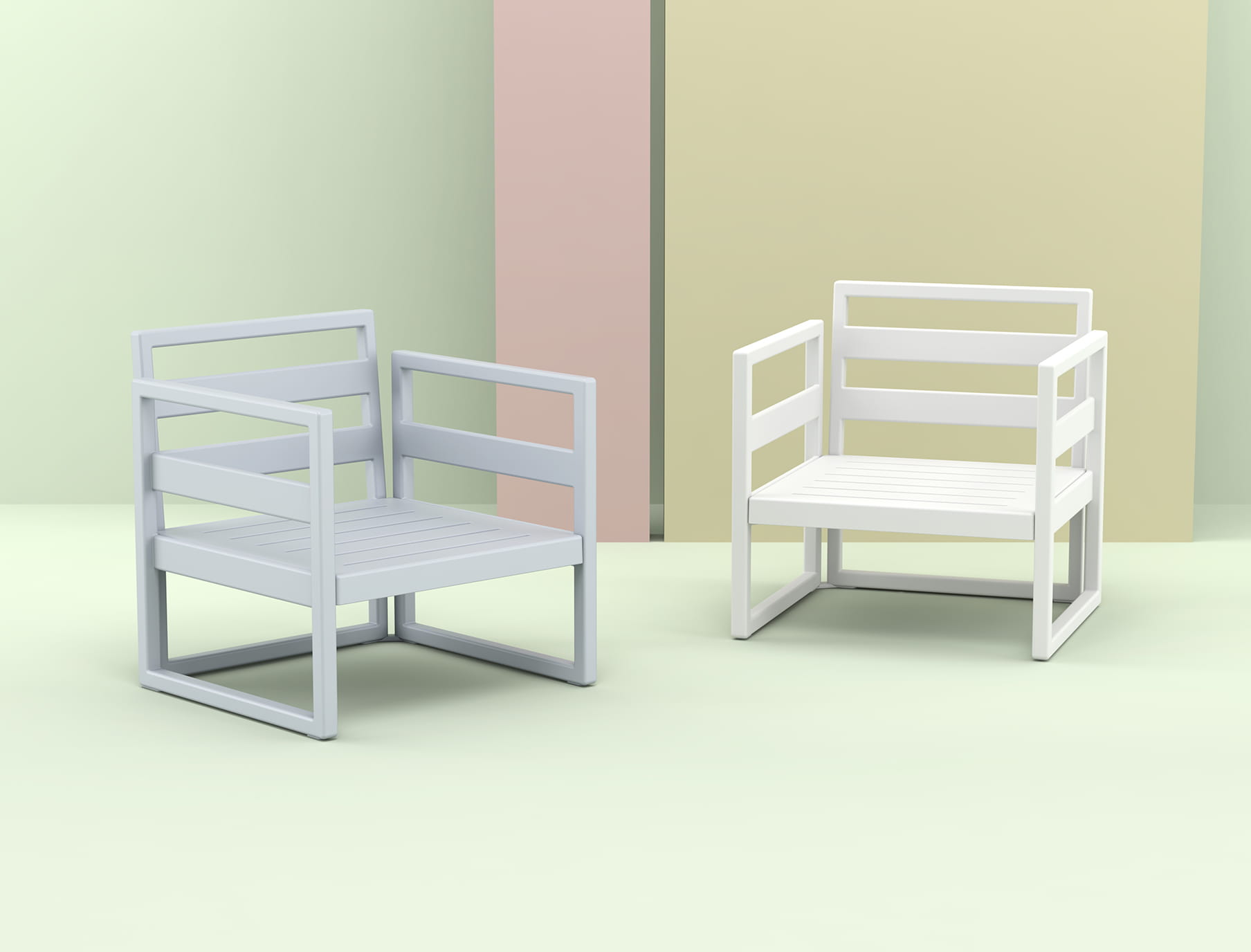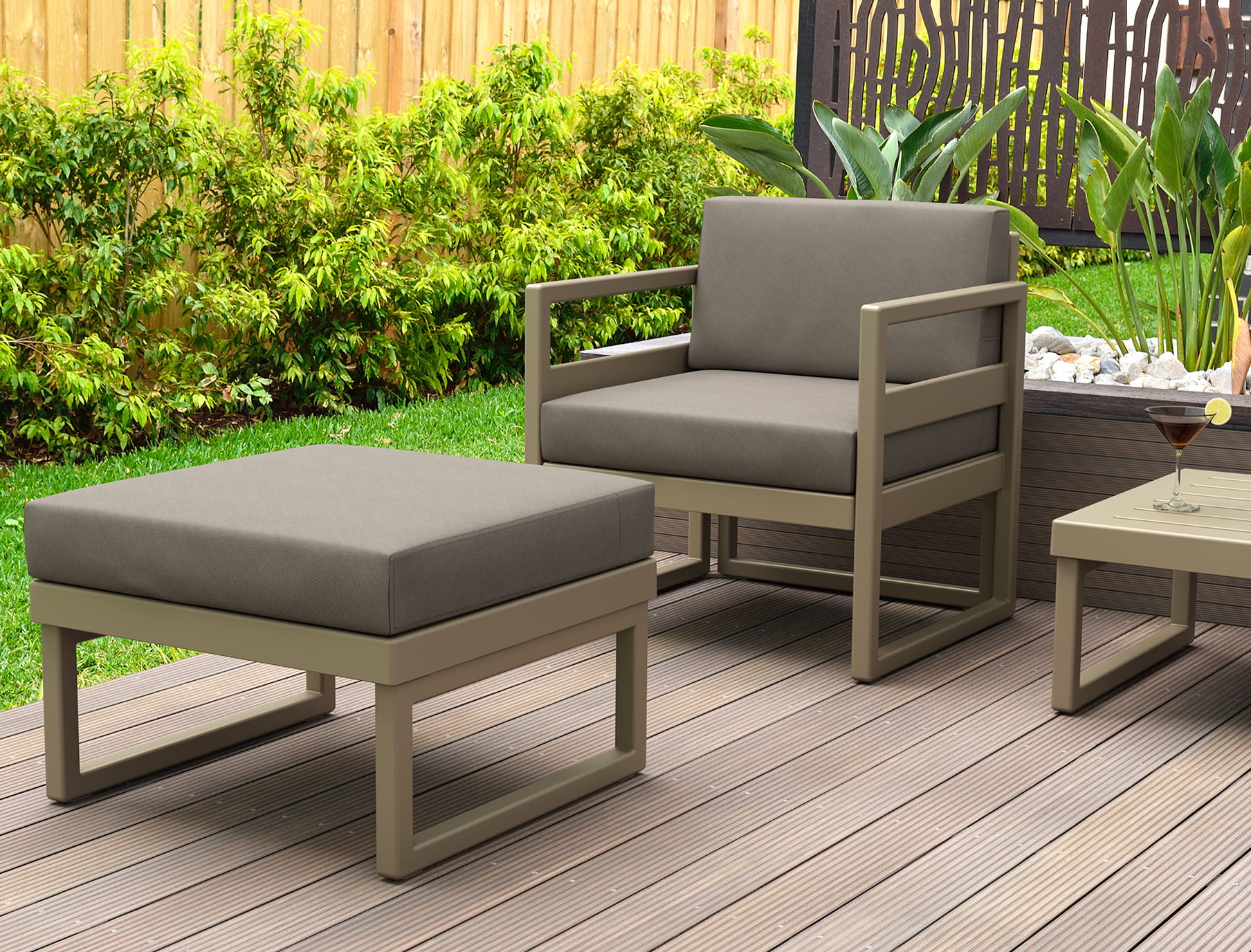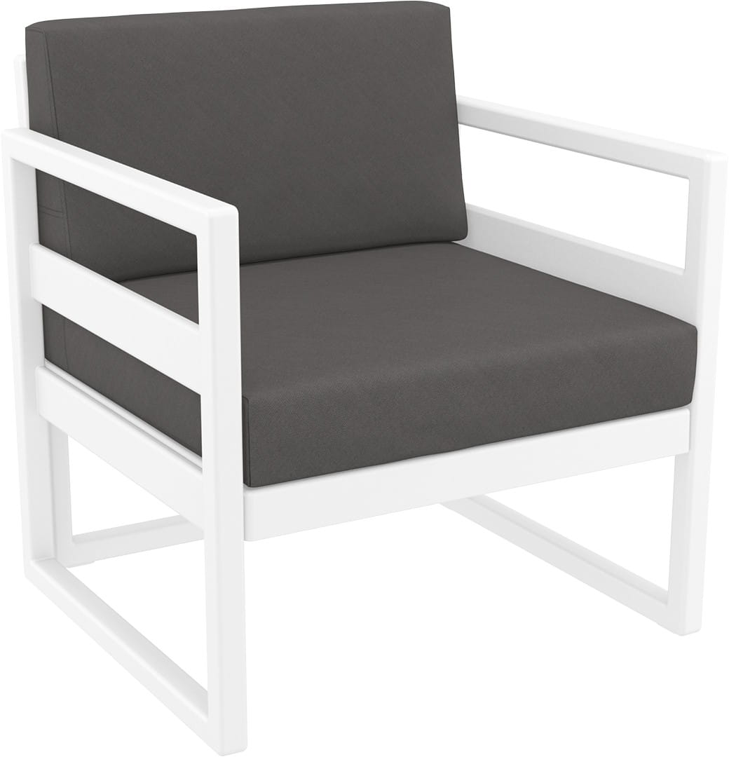Fotel MYKONOS wykonany z żywicy wzmocnionej włóknem szklanym. Fotel wyposażony w wygodne poduszki.