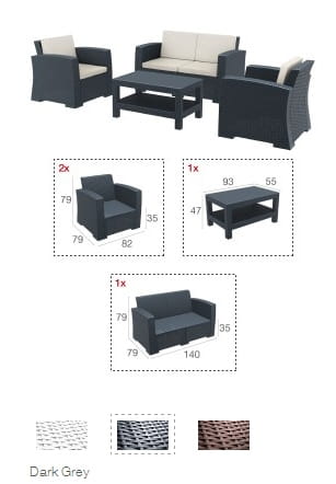 Zestaw mebli wypoczynkowych Monaco SET 2: sofa 2 osobowa + 2 fotele + stolik Nowość w ofercie Marki Siesta - meble modułowe ogrodowe Monaco.